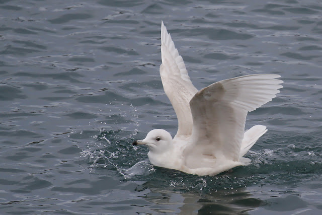 Kevin called Ross's Gull, as we both stood on the far end of the harbour wall, he picked it up as it flew from our left hand view across the harbour, passing us, I was to slow to get on to it, small, fast, my fleeting glimpse was of no detail as it disappeared in the distance to our right. Very pleasing was Kevins excitement and hearing him give the detail description of what he had seen. Nice one Kev !